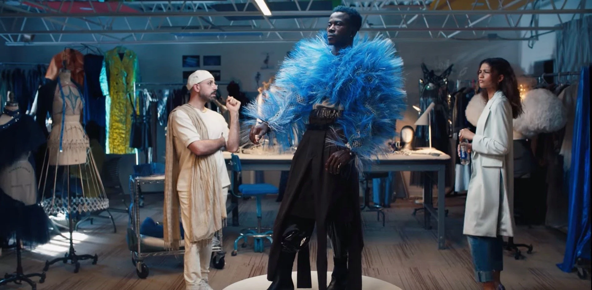 Willem Defoe on set as Marilyn. Snickers for the Super Bowl
